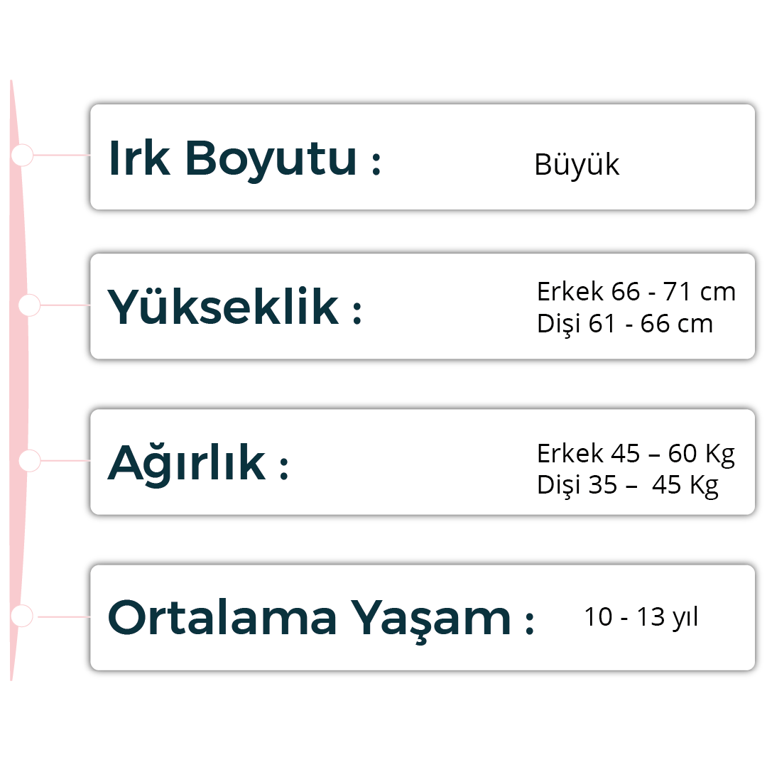 - Renkleri beyaz, kırmızı, brindle ve kızıl-brindle gibi çeşitlilik gösterebilir.
